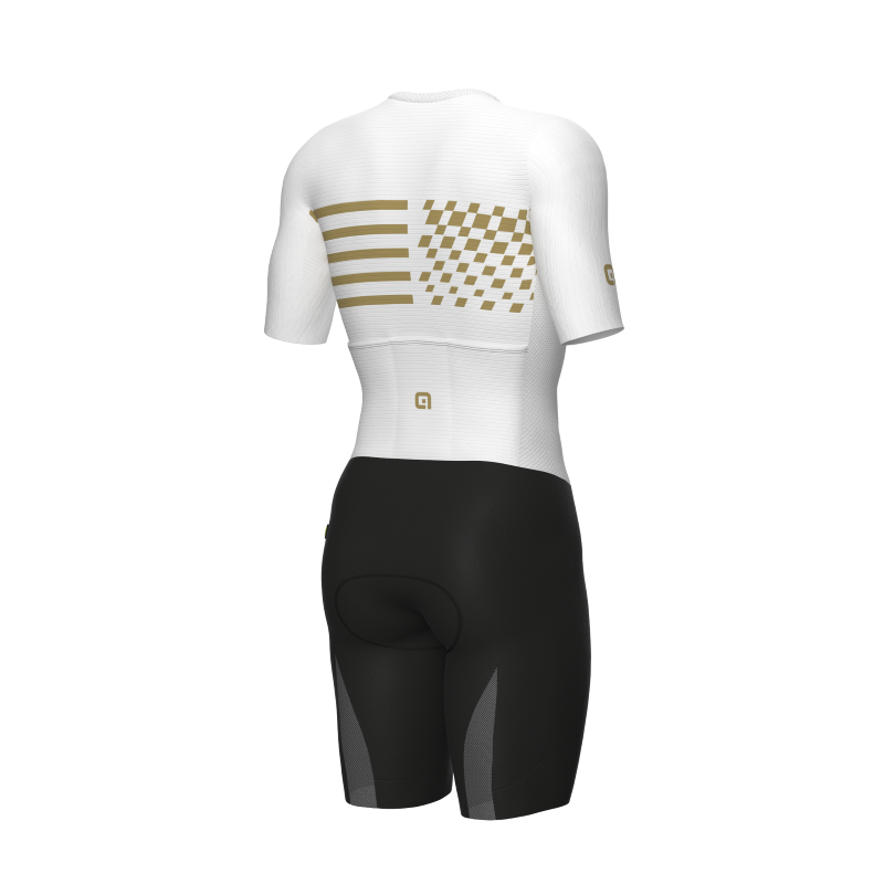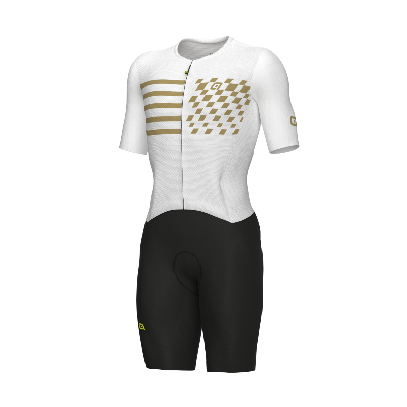 Body da strada estremamente aerodinamico, leggero e traspirante. Realizzato con una combinazione di tessuti performanti e resistenti ai raggi UV, manica tubolare a taglio vivo, zip frontale lunga, pantaloncini di alta gamma.