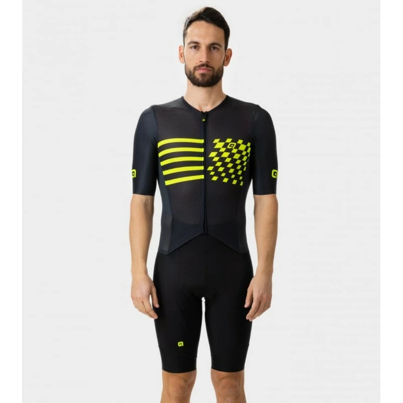 Body da strada estremamente aerodinamico, leggero e traspirante. Realizzato con una combinazione di tessuti performanti e resistenti ai raggi UV, manica tubolare a taglio vivo, zip frontale lunga, pantaloncini di alta gamma.