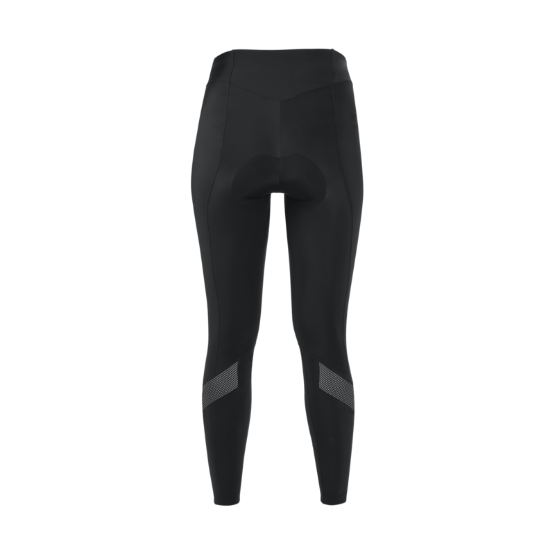 Elementi rifrangenti a 360° strategicamente posizionati dove le gambe effettuano la maggior parte dei movimenti La fascia in vita mantiene comodamente i pantaloni aderenti all’addome