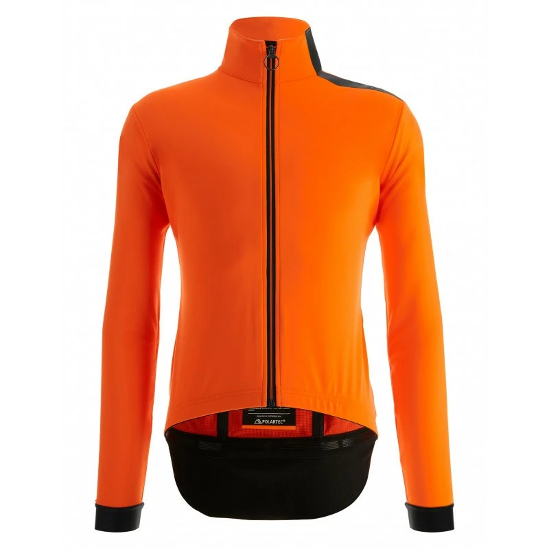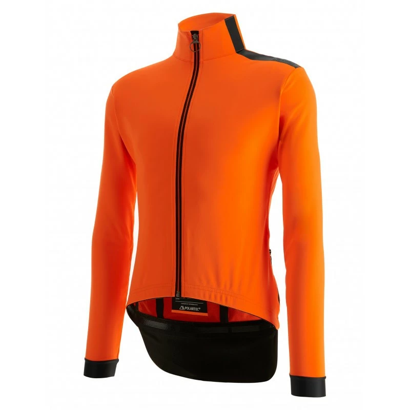 Tracolla rifrangente, inserti posteriori e logo Santini rifrangente garantiscono la massima sicurezza in condizioni di scarsa visibilità.”